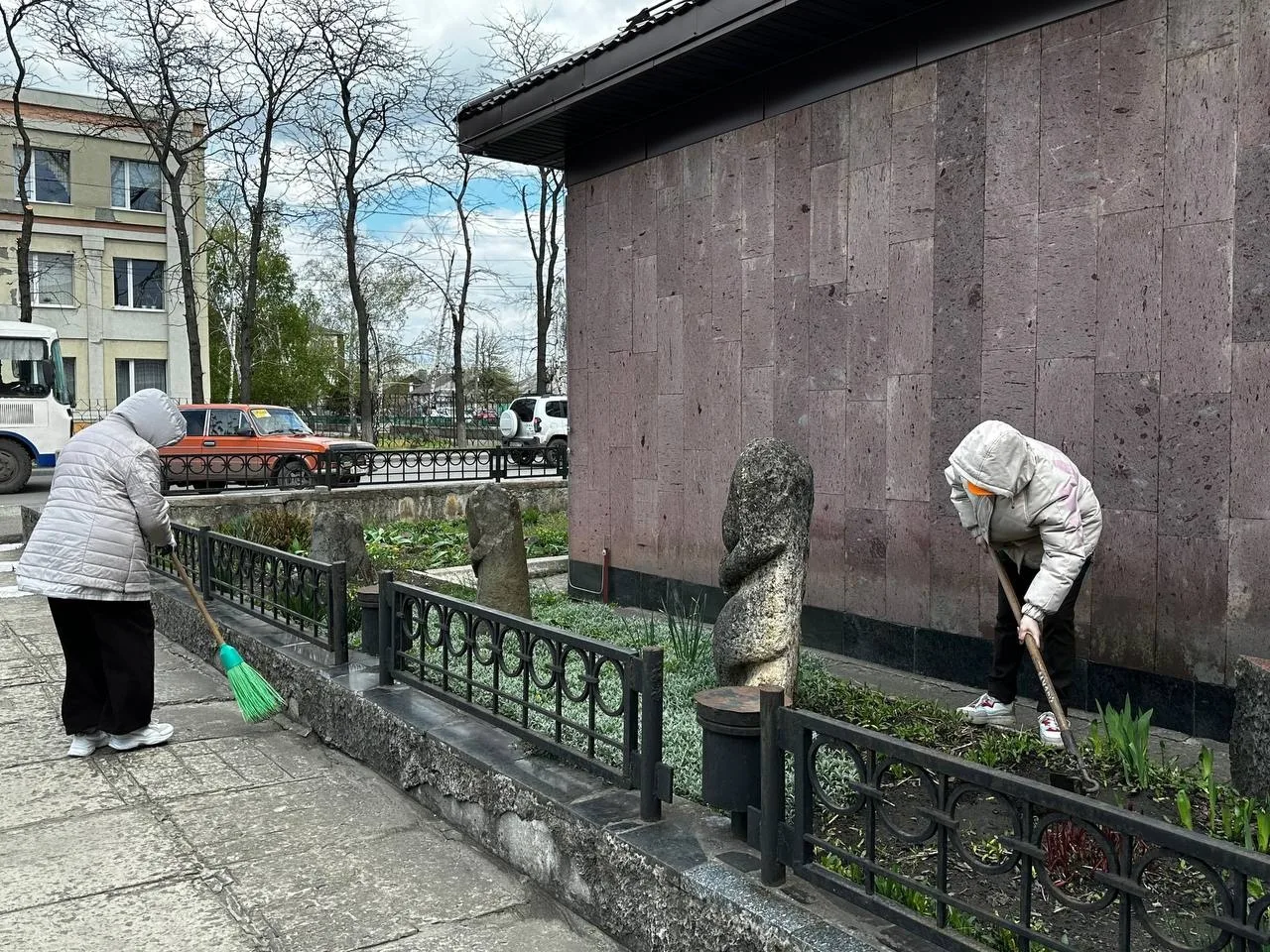 Сотрудники музея вышли на уборку территории, навели порядок, собрали мусор, привели в чистоту прилегающие к музею пространства.