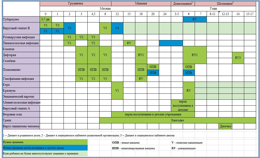 Национальный календарь охватывает 12 инфекций. Прививки от них делают бесплатно в поликлиниках по месту жительства.