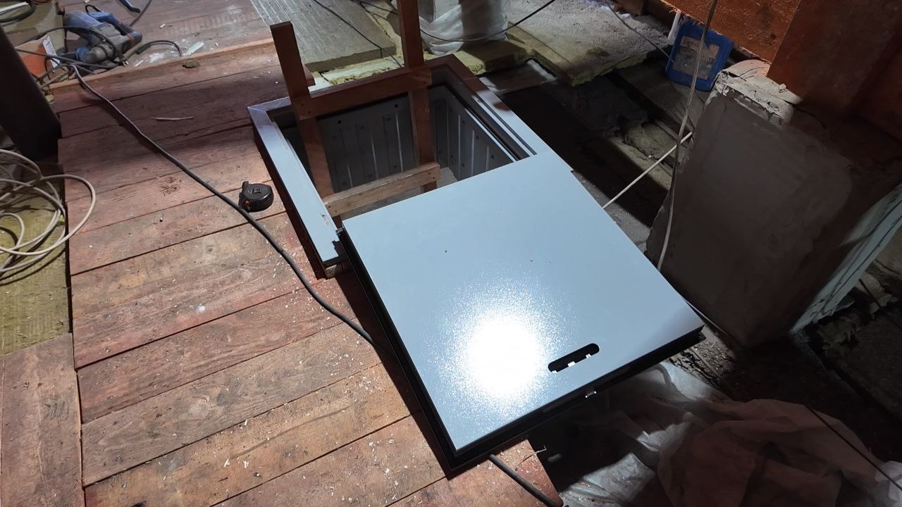 На Коцюбинского, 4 в Молодогвардейске ведутся заключительные работы по кровле: укладывается последний слой минеральной ваты, которая обеспечивает тепло и звукоизоляцию здания, помогает сохранять тепло и повышает комфорт внутри помещений. Ранее были смонтированы несколько новых чердачных люков. На объекте работает бригада из 6 человек, готовность составляет 98 %.