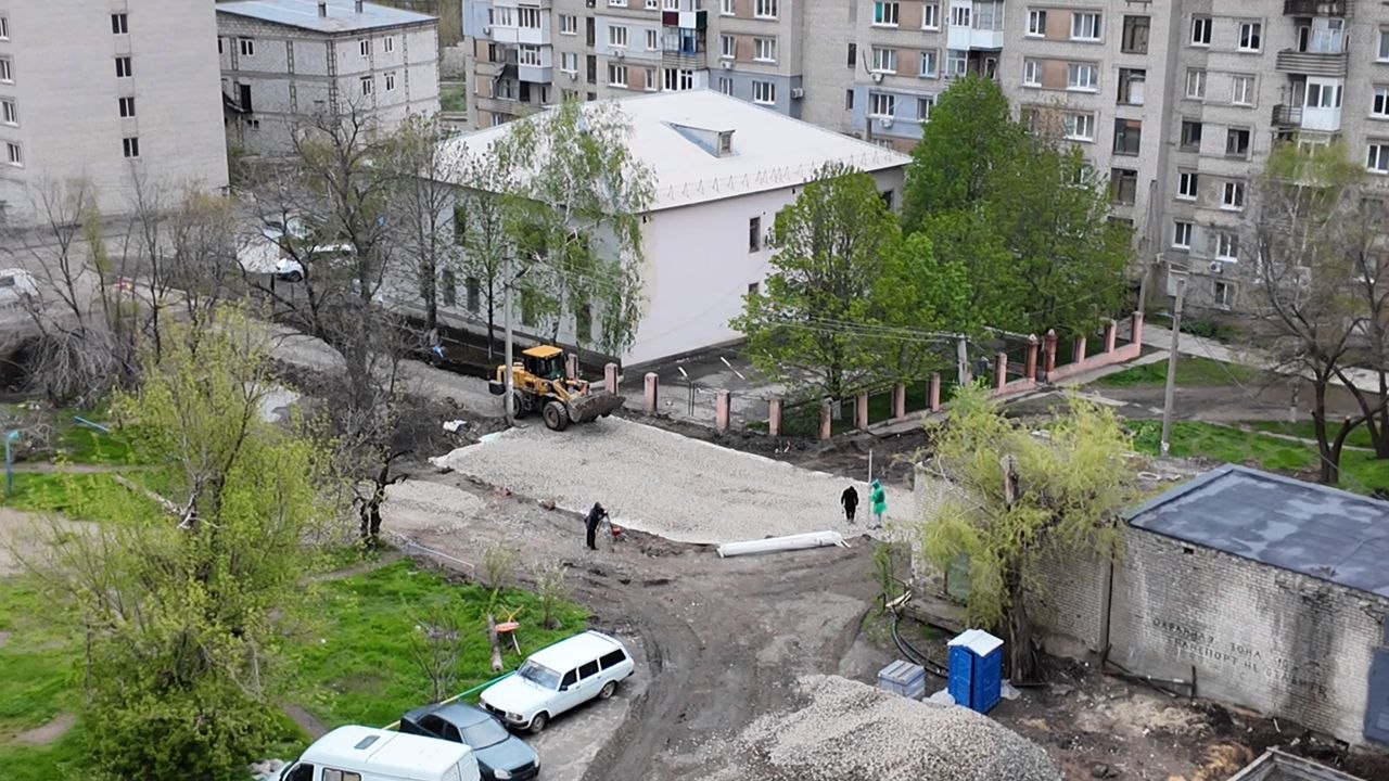 Строительная компания «Артстрой» продолжает комплексное благоустройство территории на улице Артема, 11 в Краснодоне. На объекте ведутся работы по отсыпке щебёночного основания, монтажу дорожных бордюров и паребриков, а также устройству геотекстиля и бетонированию отдельных участков. Эти мероприятия необходимы для укрепления дорожного полотна, повышения его долговечности и устойчивости к нагрузкам.