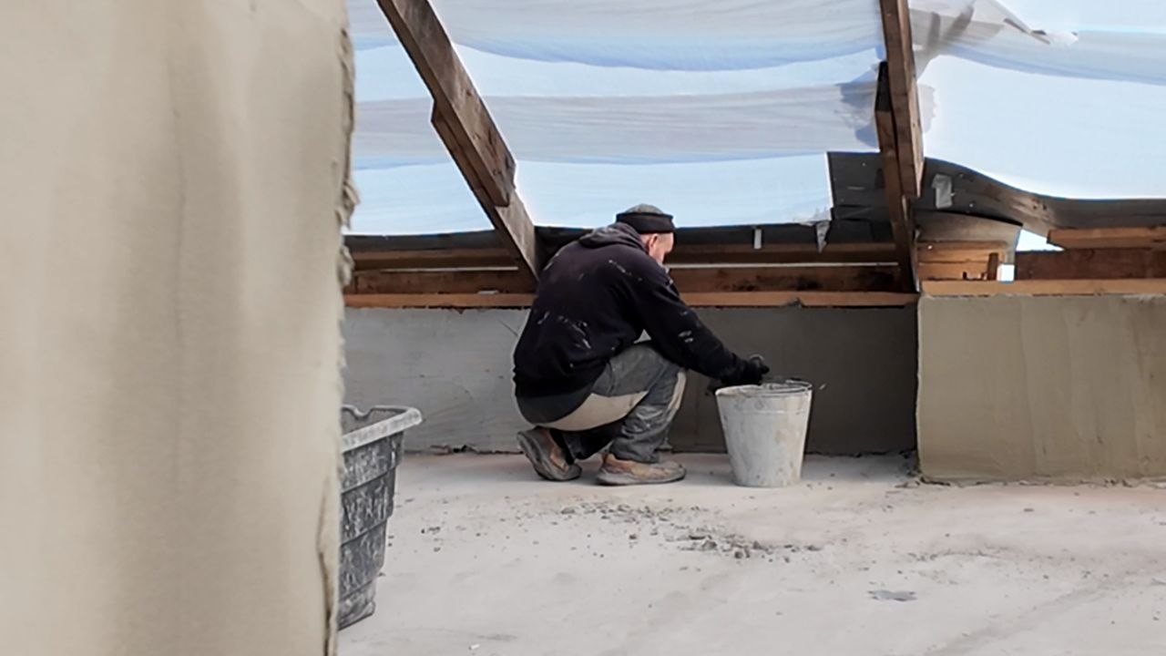 На объекте по адресу Советский, 1 в Краснодоне специалисты СК «СТИЛЛ» продолжают выполнение строительных работ. На текущий момент завершена заливка стяжек в четвёртом подъезде, параллельно ведутся штукатурные работы. Также выполняется устройство вентиляционных шахт и парапета.