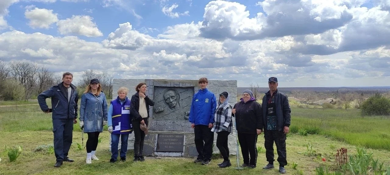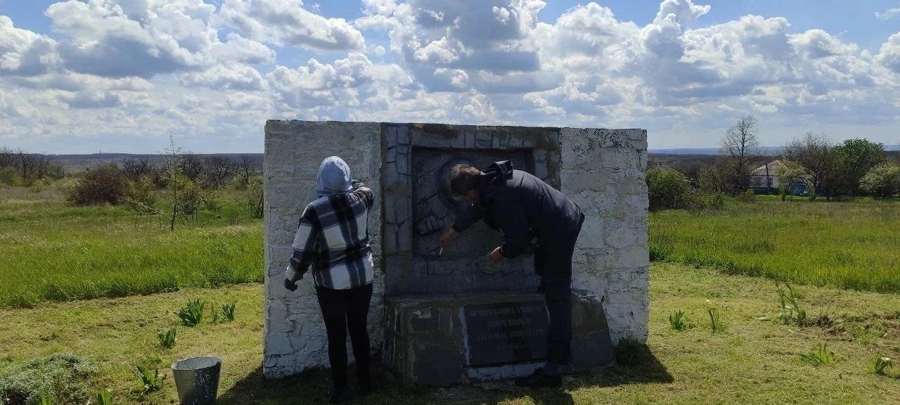 В рамках акции проведена уборка сухостоя, подготовлена клумба, высажены новые цветы. Благоустроена территория памятного знака: проведена штукатурка и покраска, обрезка и побелка деревьев, покос травы.