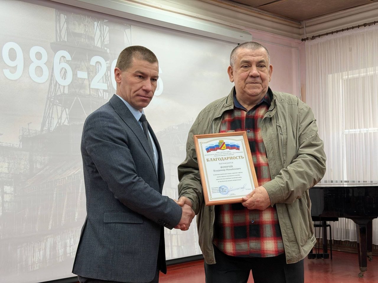 Благодарностями Главы городского округа были отмечены Александр Дорофеев и Владимир Фомичев, а от имени Совета городского округа Благодарственные письма вручены Николаю Павлюку и Петру Сторожуку.