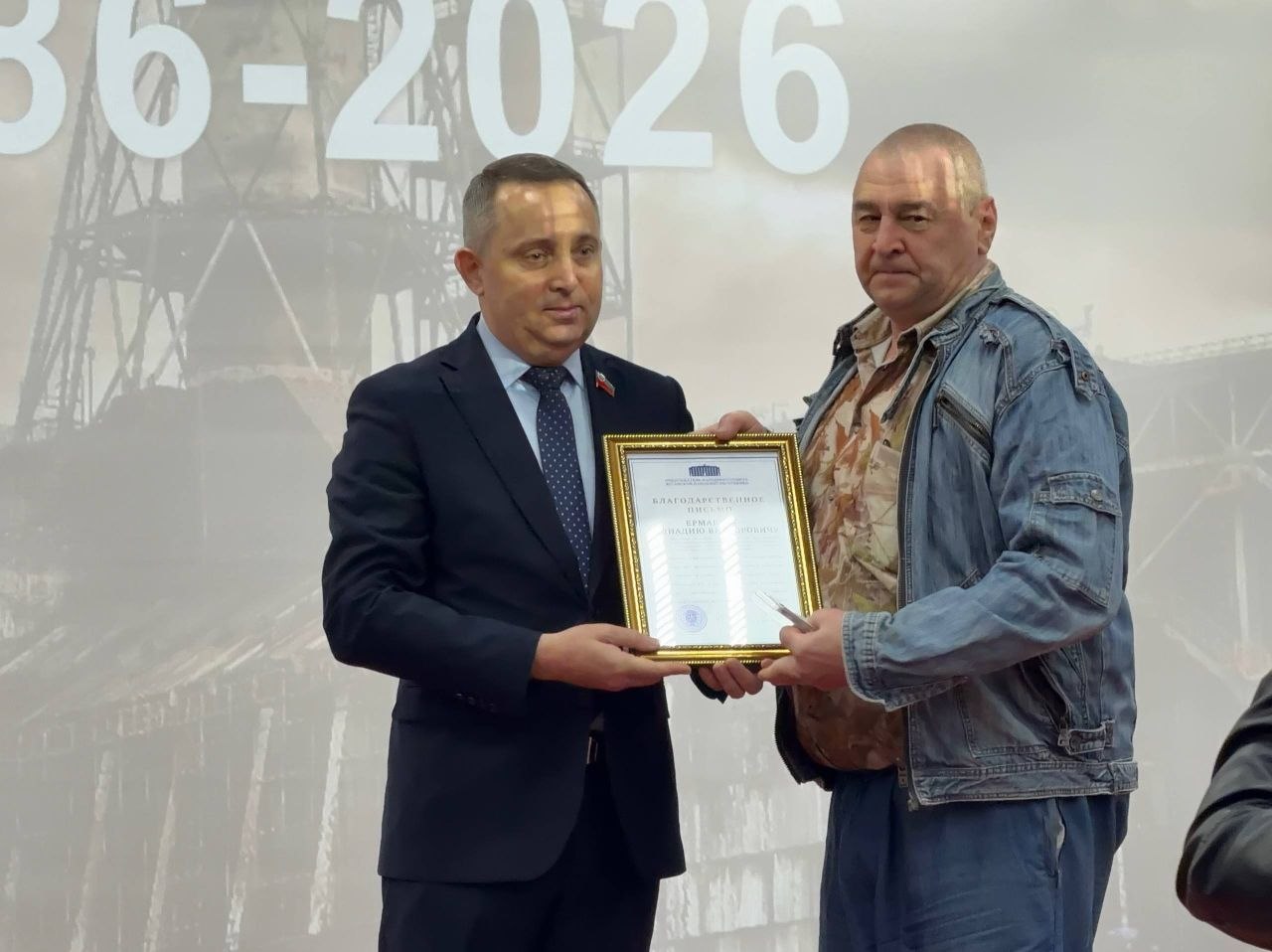 Среди гостей мероприятия был депутат Народного Совета ЛНР Андрей Губарев, который обратился к собравшимся и передал Благодарственное письмо Председателя Народного Совета Геннадию Ермакову.