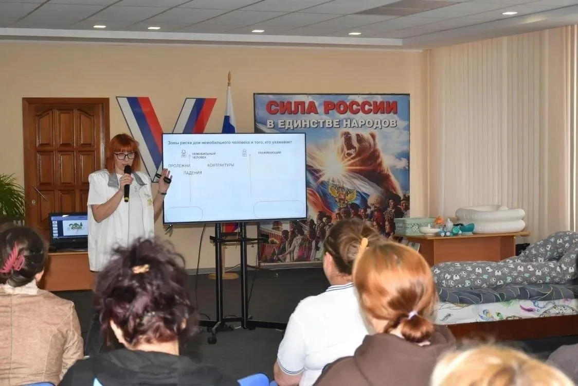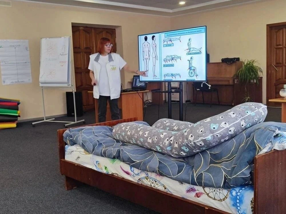 Участники освоили практические навыки, включая безопасное перемещение подопечных, профилактику рисков, гигиенические процедуры, позиционирование для предотвращения пролежней, а также помощь при кормлении и ходьбе. Особое внимание было уделено профилактике синдрома эмоционального выгорания и психологической поддержке сотрудников.