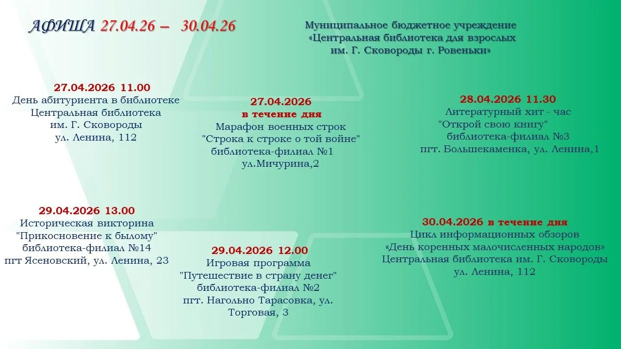 С 27 по 30 апреля в библиотеках пройдут: