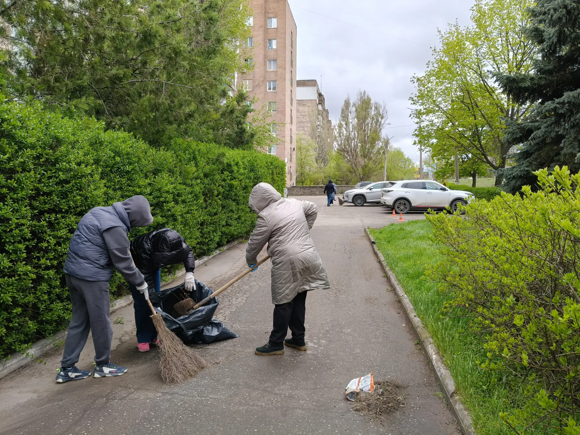В результате совместной работы собрано около 1,5 м3 опавших веток, листвы и мусора на прилегающей территории к центральному входу в здание. Приведена в надлежащее состояние парковка и внутренний двор.