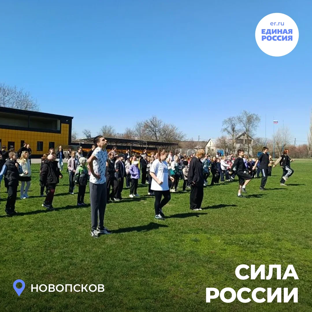 В Новопскове на стадионе «Строитель» состоялась массовая зарядка с участием школьников, воспитанников спортивной школы и активистов партии. Участники с энтузиазмом выполняли упражнения, демонстрируя ловкость, силу и командный дух.