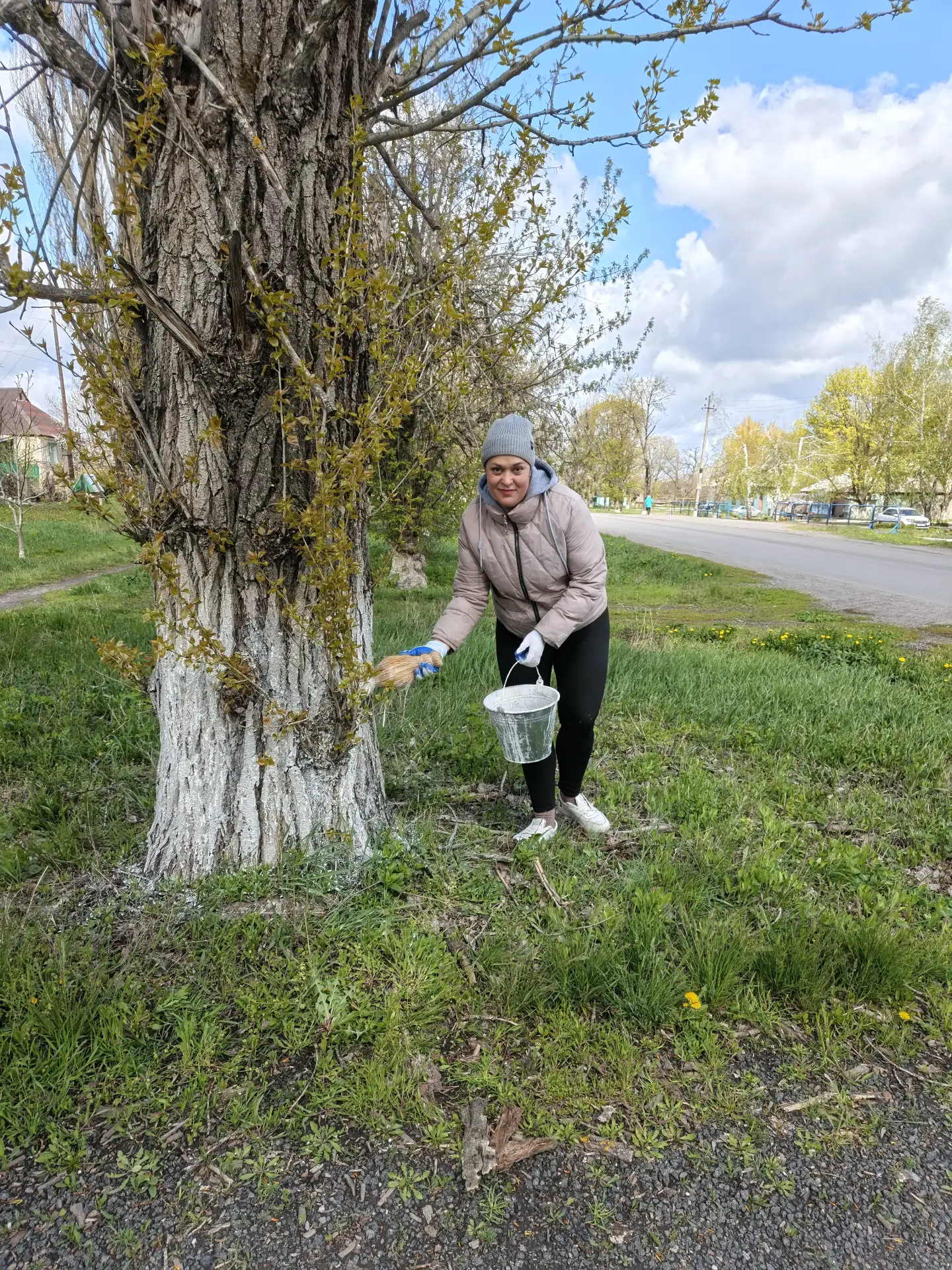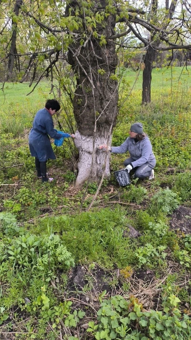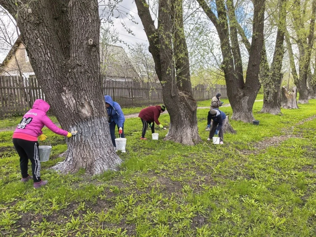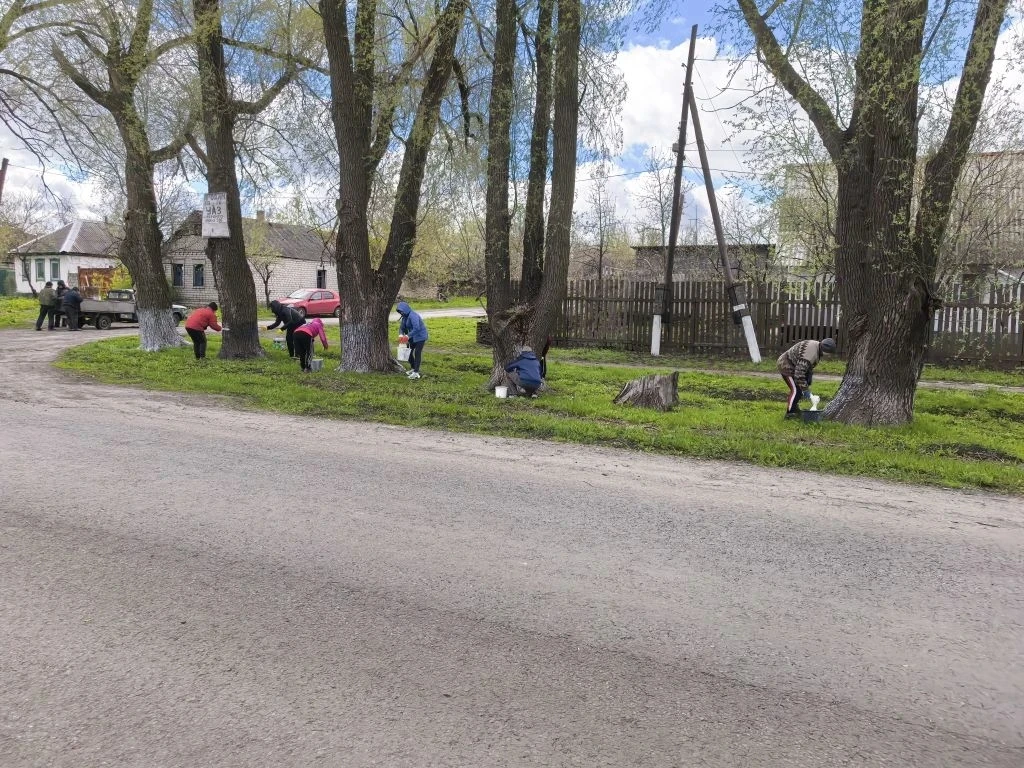 Участники субботника вышли на побелку деревьев по улице Ленина, протяженность которой составляет 4 километра.