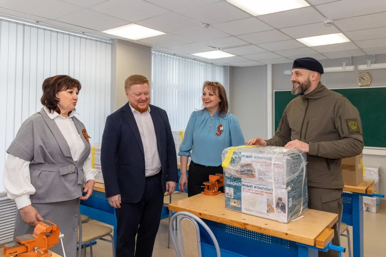 Замдиректора Национального исследовательского центра «Курчатовский институт» Максим Фирсов лично привёз лабораторные комплекты по физике. Для него провели экскурсию по школе: она была разрушена в 2014 году от авиаудара ВСУ, но восстановлена в 2024-м благодаря поддержке региона-шефа Москвы.
