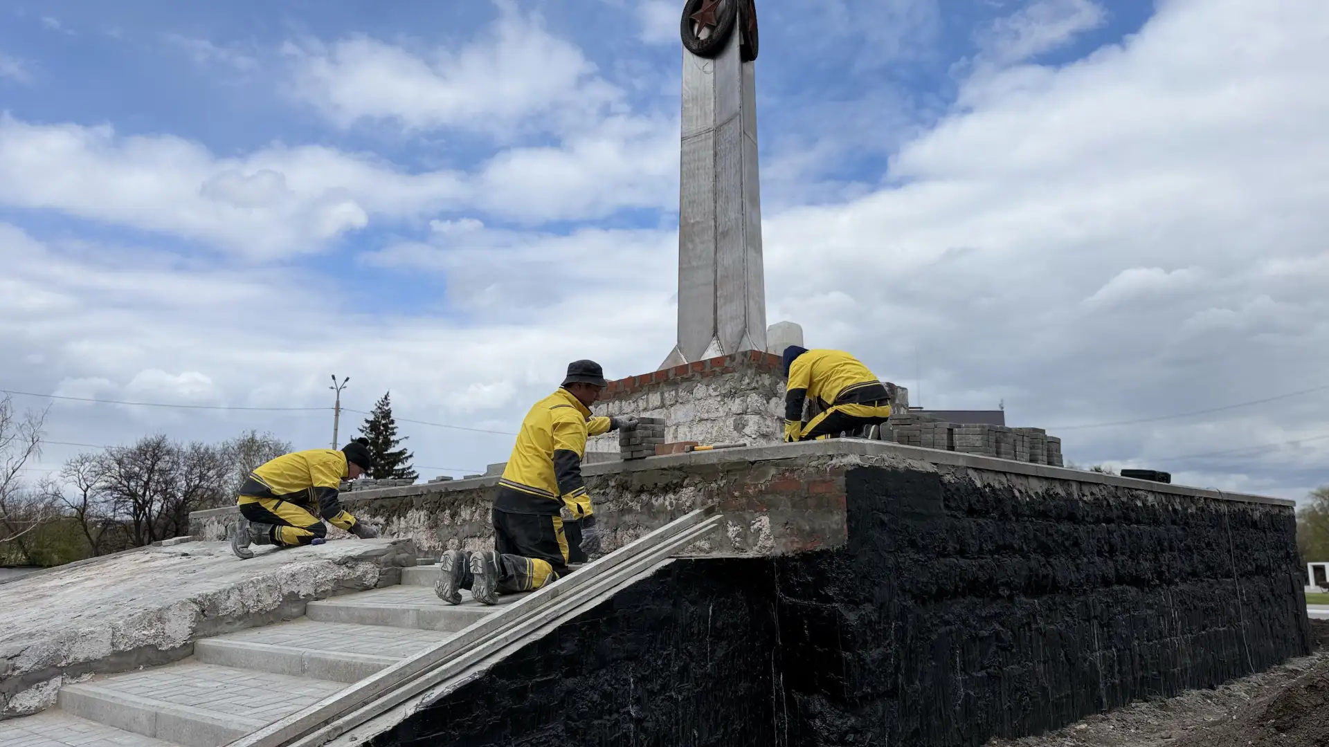 Ремонтновосстановительные работы на монументе «Обелиск Победы», который расположен напротив Алчевского центра культуры и народного творчества по улице Липовенко, стартовали в начале апреля.