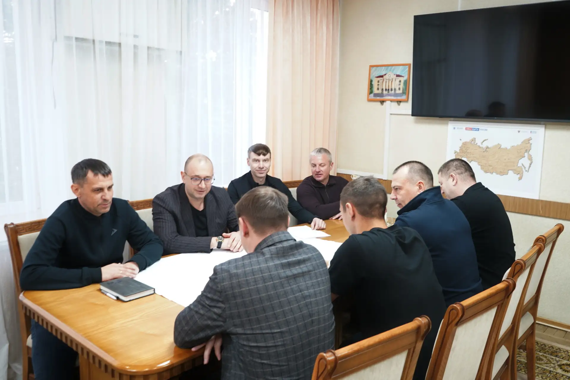 С первым заместителем Главы Администрации Романом Беловолом, директором парка Максимом Марковым провели встречу с представителями Министерства строительства, ЖКХ и Управления капитального строительства Красноярского края, ООО «Стройтехмонтаж» и руководителем делегации Красноярского края в нашем округе Виктором Ермаковым.