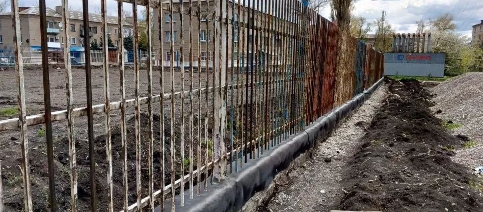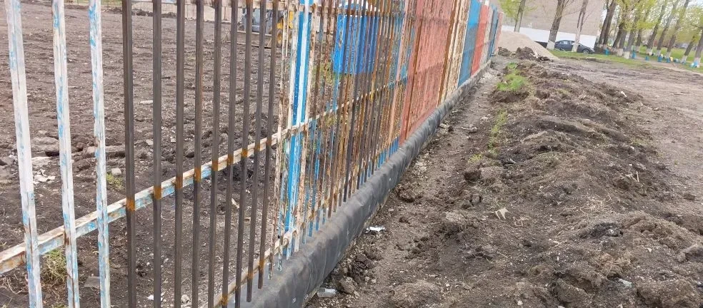 На сегодняшний день завершаются подготовительные работы ремонта фундамента под ограждение площадки и очистка металлического ограждения под окраску.