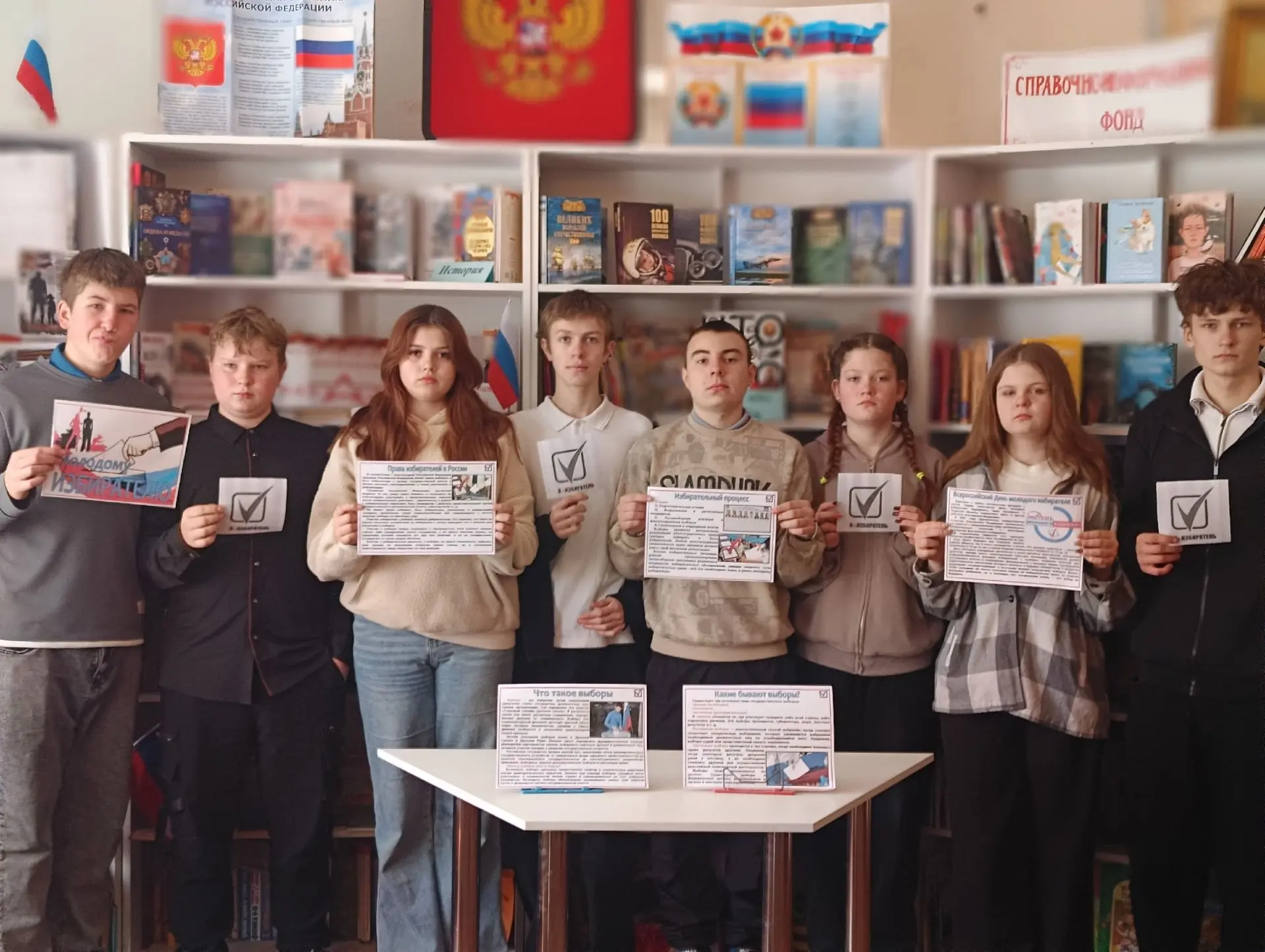 В библиотеке-филиале №3 (пгт. Большекаменка) прошла встреча «Молодой избиратель», где доступно объяснили основы выборов и важность участия в голосовании. В филиале №6 (пгт. Кленовый) для школьников провели час «Нам жить – нам выбирать!», углубив знания о выборах и значении голоса. В филиале №9 (пгт. Новодарьевка) прошла минутка «Сегодня школьник - завтра избиратель» с обсуждением избирательного права и игрой «Литературные избиратели», где участники решали ситуации, предложенные литературными героями.