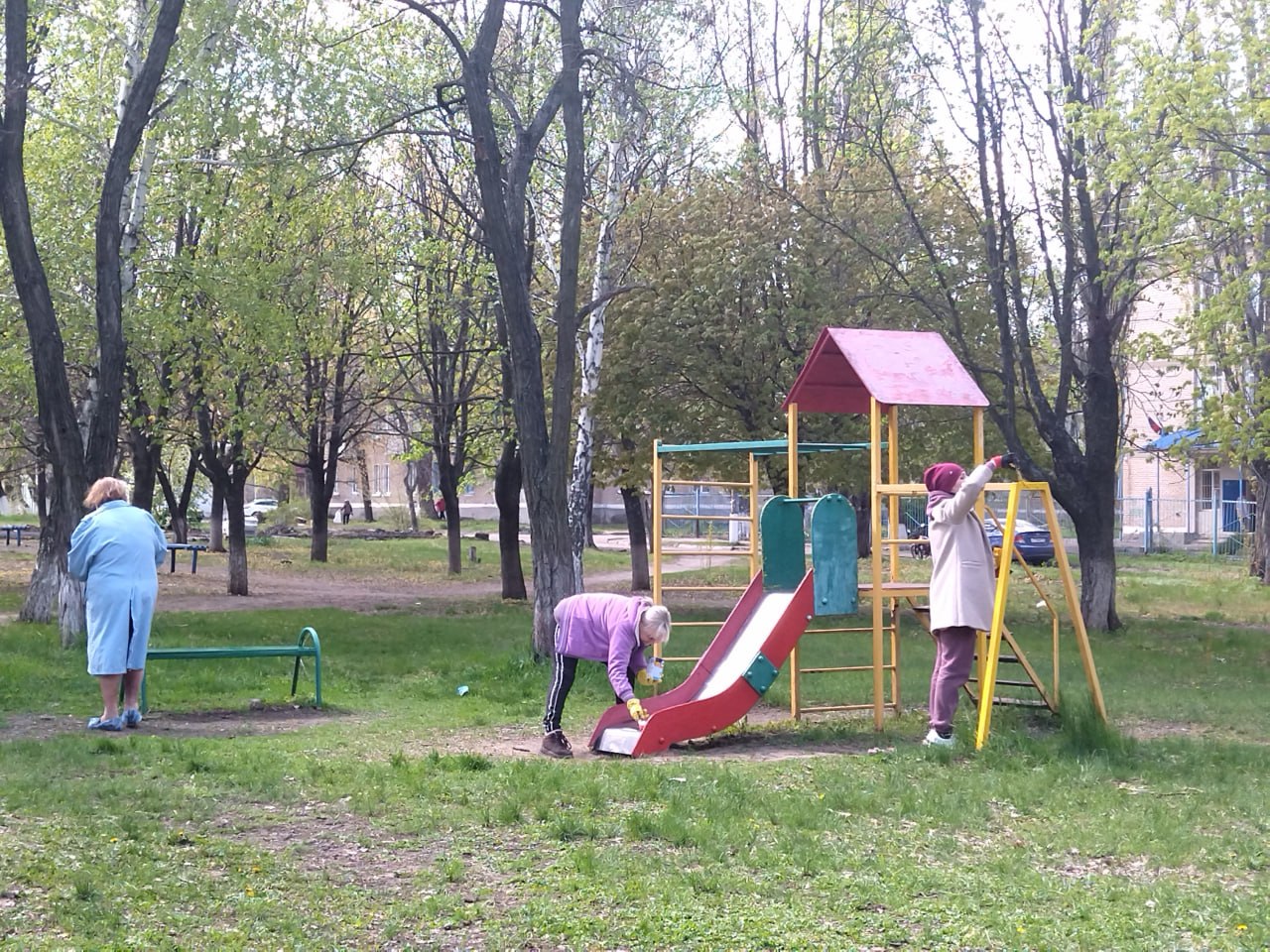 В сквере им. В. Ташлыкова проведена покраска детской площадки, что сделало ее более яркой и интересной для детей.