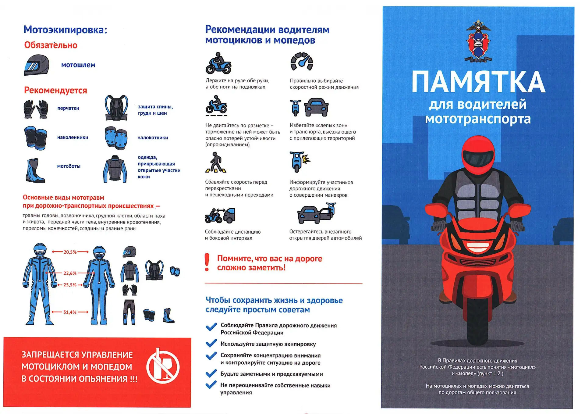 Уважаемые водители мототехники, помните, что двухколесный транспорт требует повышенного внимания и навыков. В отличие от автомобиля мотоцикл предоставляет меньше степени защиты, а любое, даже малейшее, нарушение правил или недооценка дорожной ситуации может привести к непоправимым последствиям.