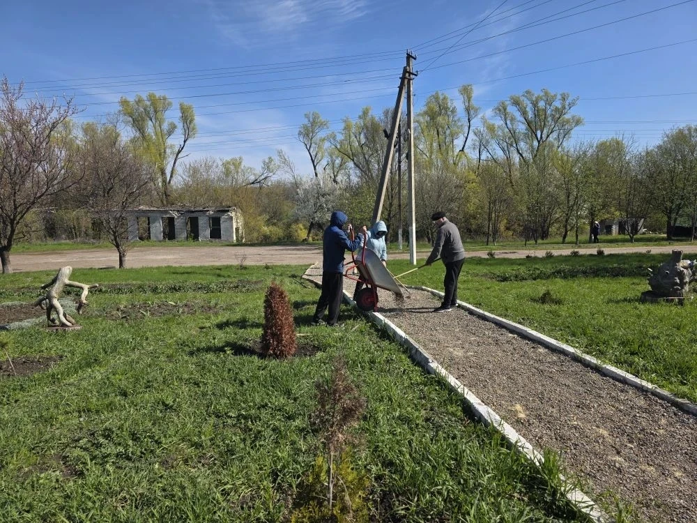 В селе Тимошино Белокуракинского округа продолжаются работы по благоустройству территории. Сотрудники отдела по обеспечению жизнедеятельности населённого пункта совместно неравнодушными жителями провели уборку в парке села.