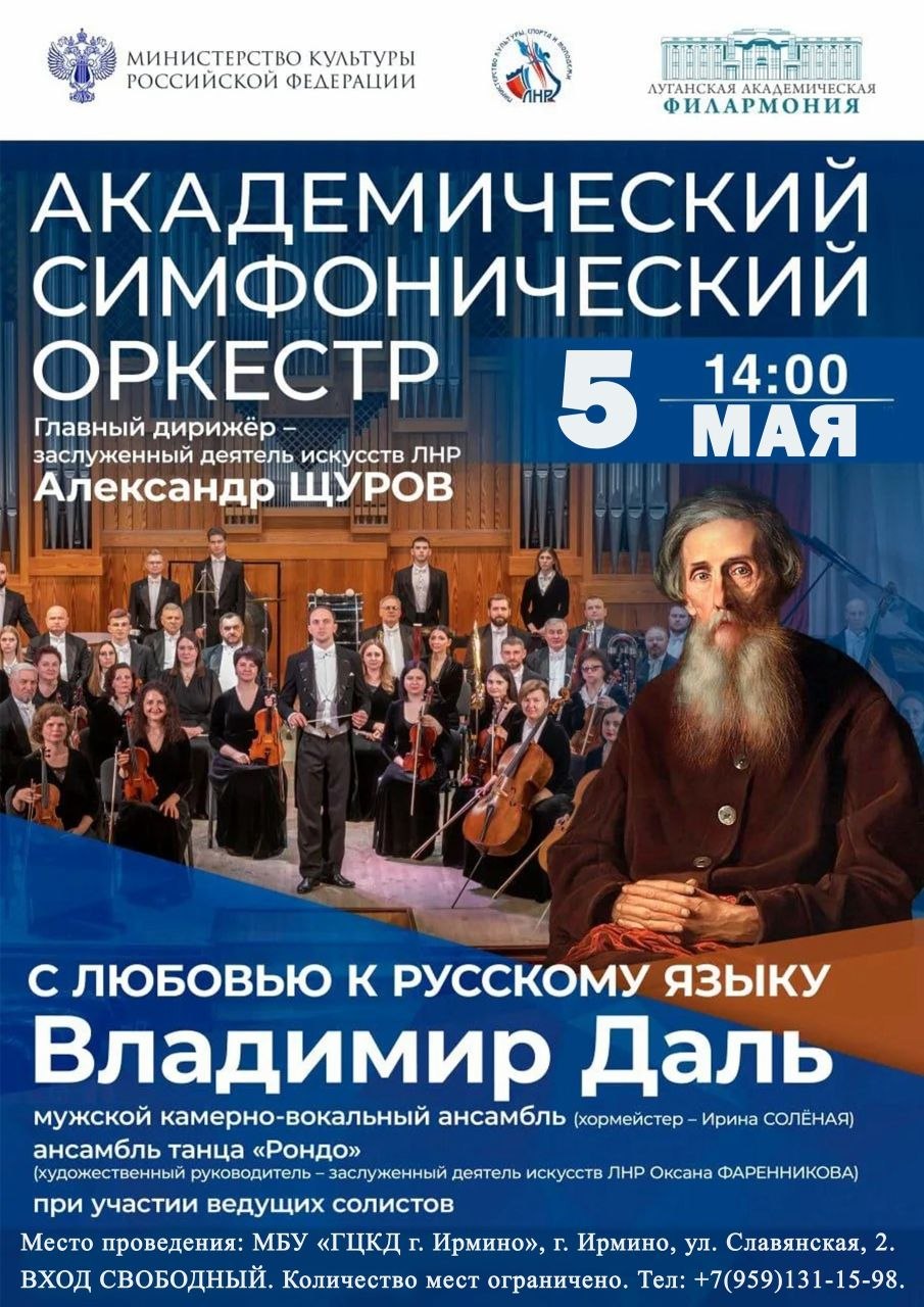 5 мая в 14:00 Городской центр культуры и досуга г. Ирмино ждет всех желающих на концерт. Вход свободный. Бронь мест в зрительном зале по тел. +79591311598.