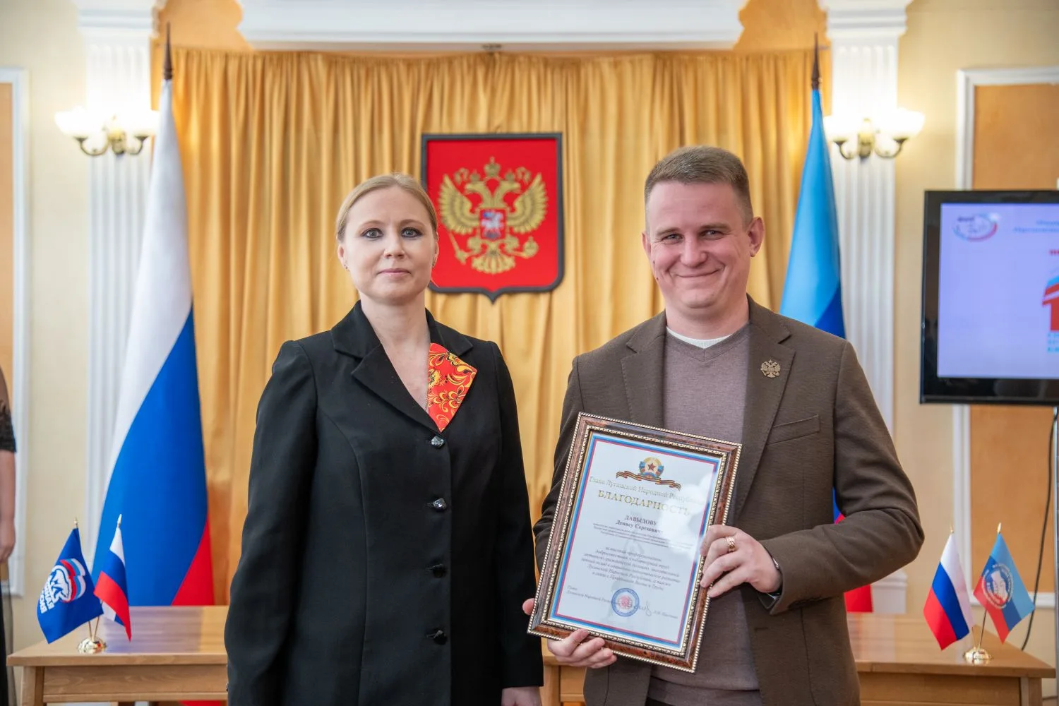В церемонии награждения также приняли участие Председатель Народного Совета ЛНР, секретарь реготделения партии «Единая Россия» Денис Мирошниченко и Председатель Федерации профсоюзов республики Игорь Рябушкин.