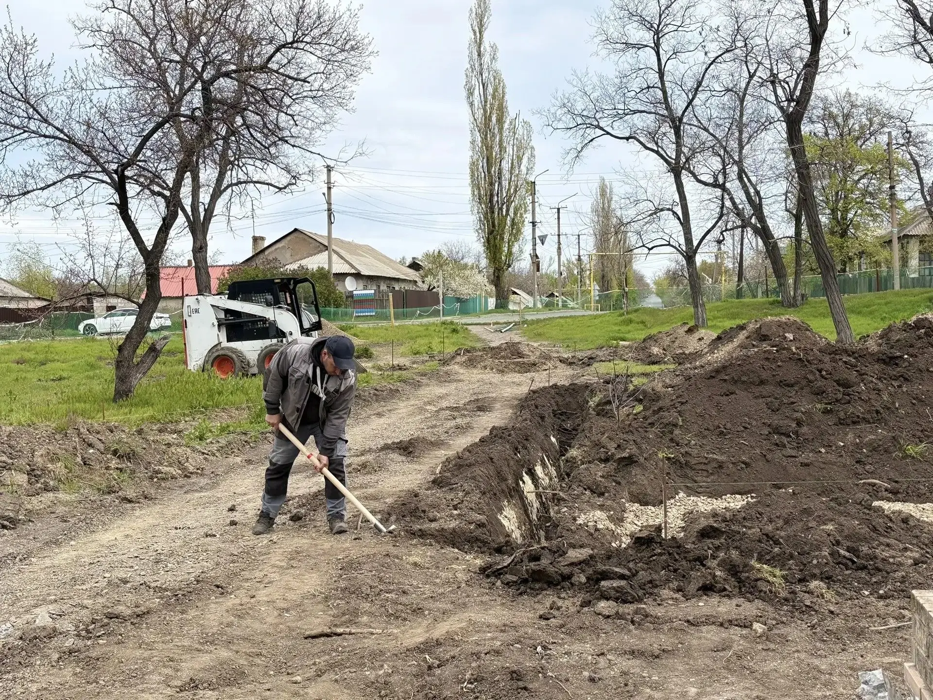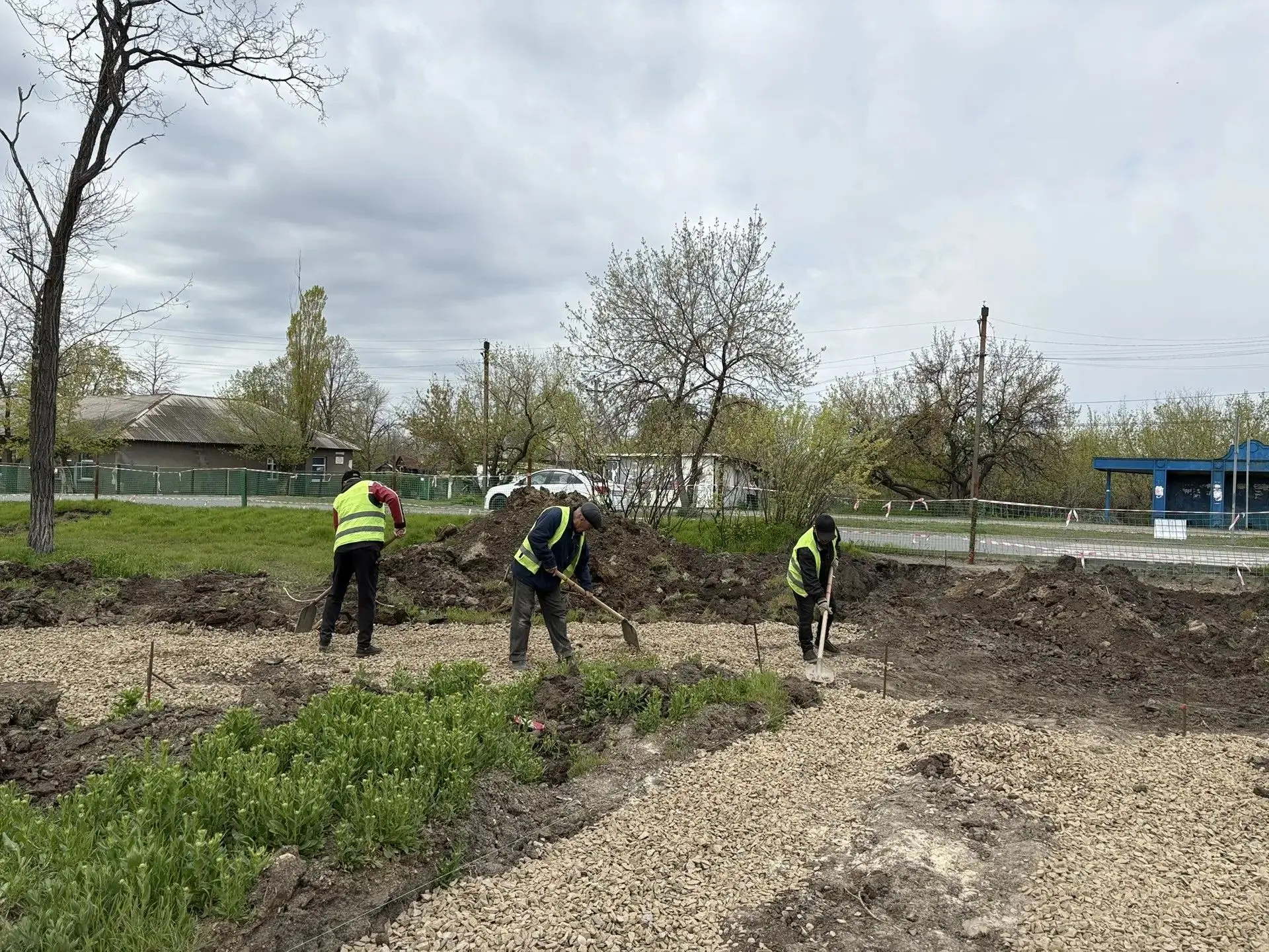 На текущий момент ведутся подготовительные работы для установки бордюрного камня. Техника на месте, специалисты занимаются разметкой и копают траншею для последующей установки бордюрного камня. Напомню, что в сквере будут обновлены пешеходные дорожки, установлены лавочки и современное освещение.