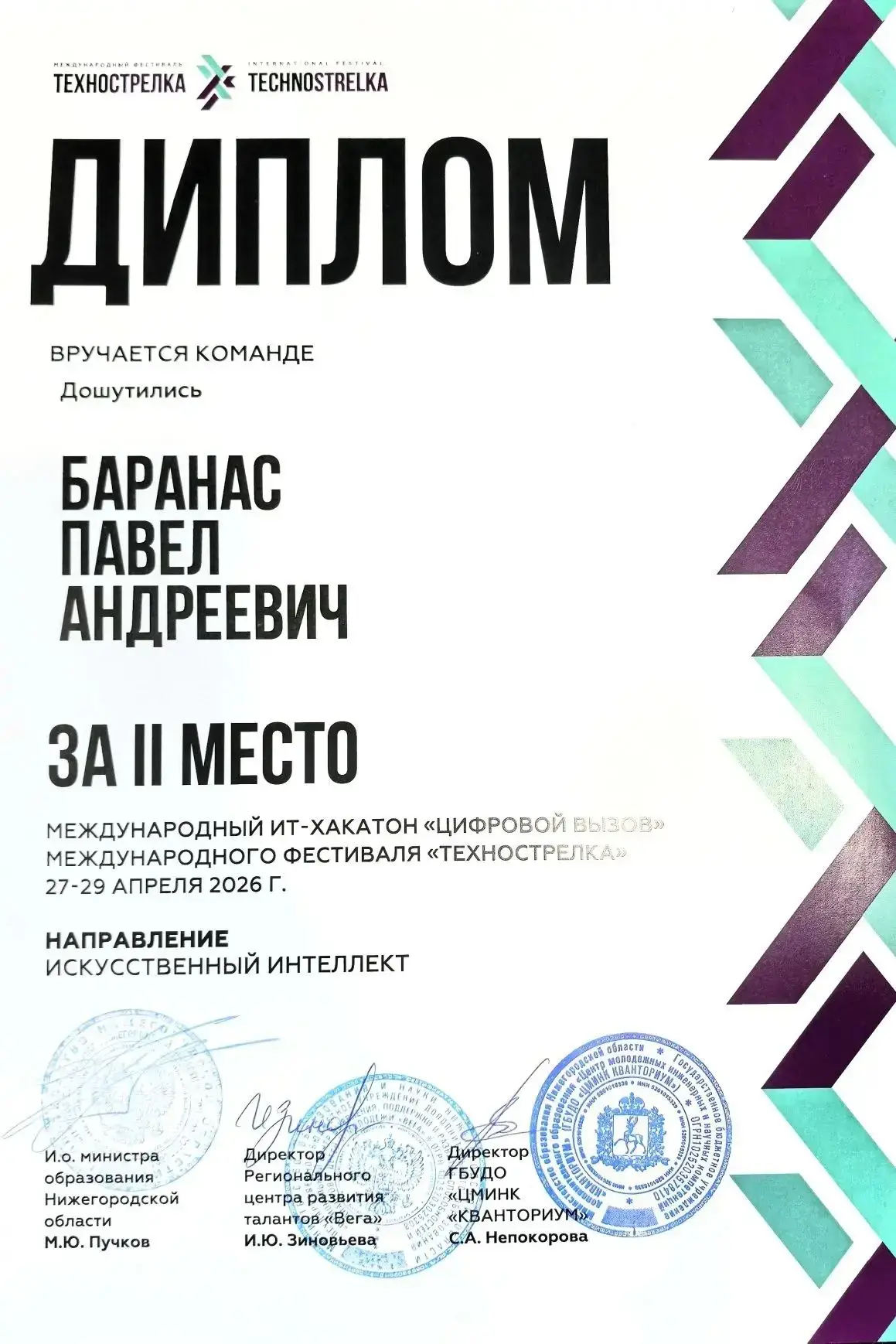 В Международном фестивале «ТехноСтрелка» в Нижнем Новгороде наш школьник добился высоких результатов среди сотен участников со всех уголков нашей страны.