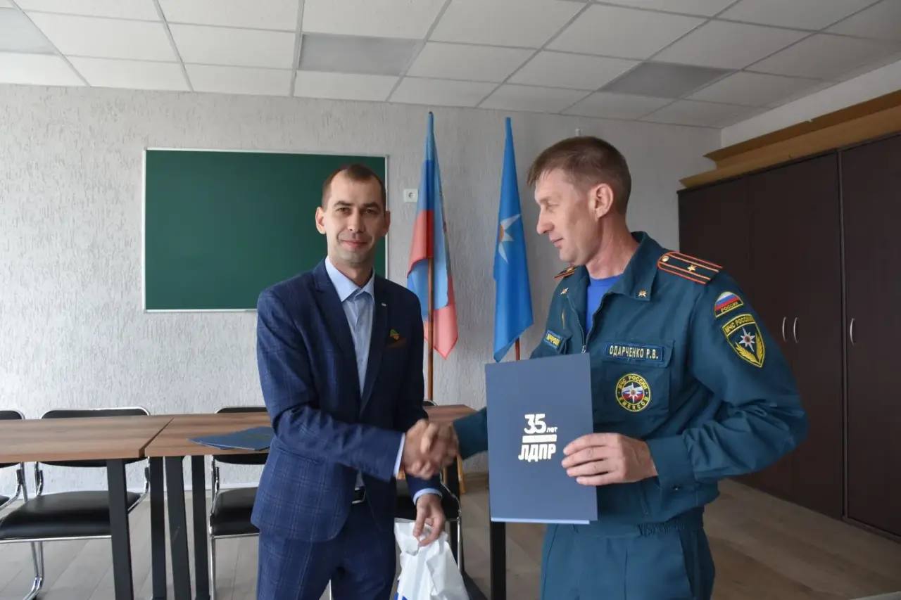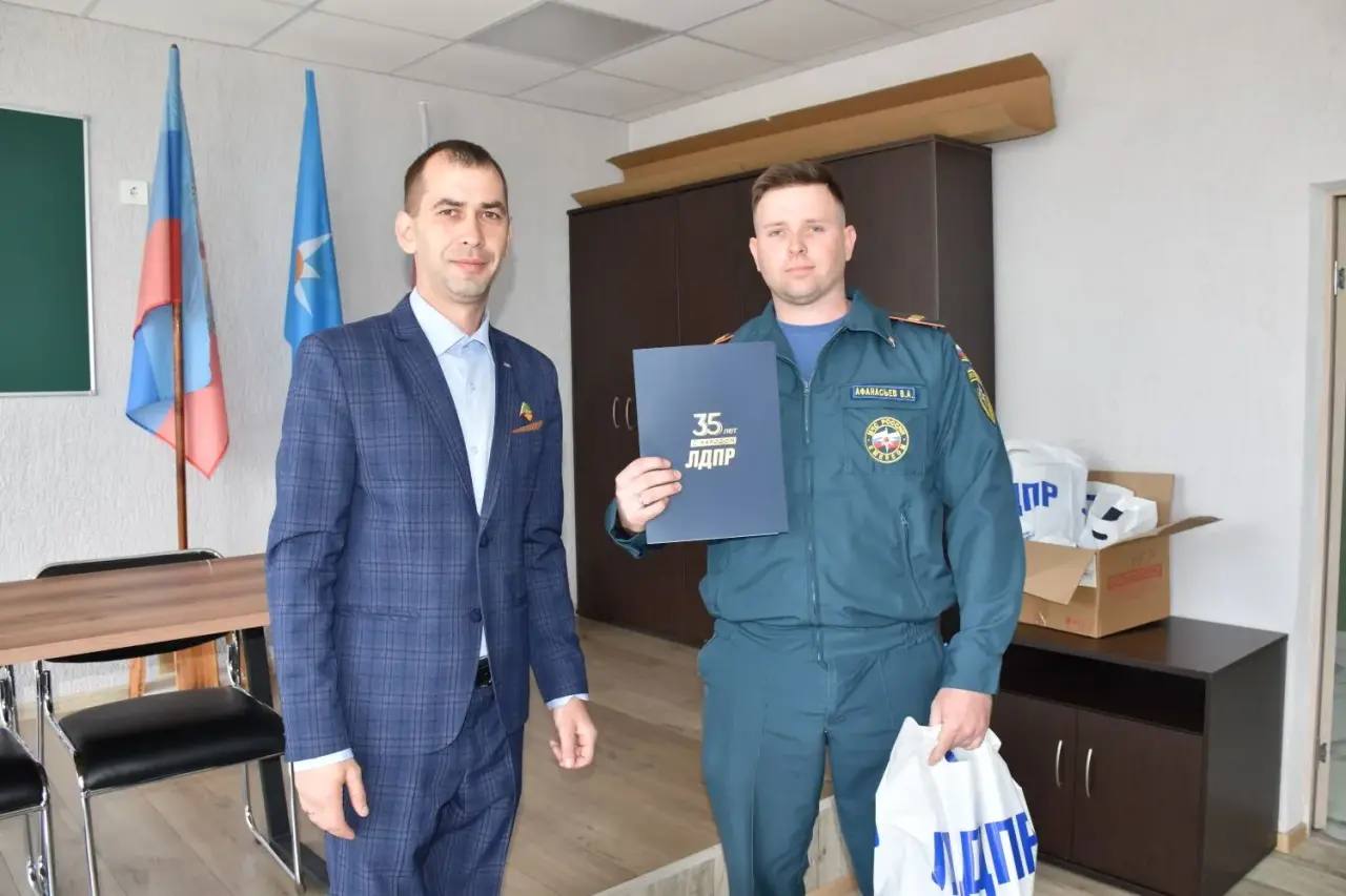 В ходе визита он вручил благодарность от Председателя ЛДПР Леонида Слуцкого за добросовестную службу и вклад в обеспечение безопасности жителей.