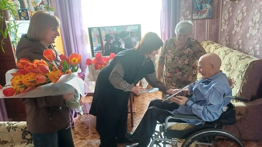 Представители Совета женщин Татьяна Ветрова и Ольга Руденко преподнесли юбилярам букет весенних цветов и сладости.