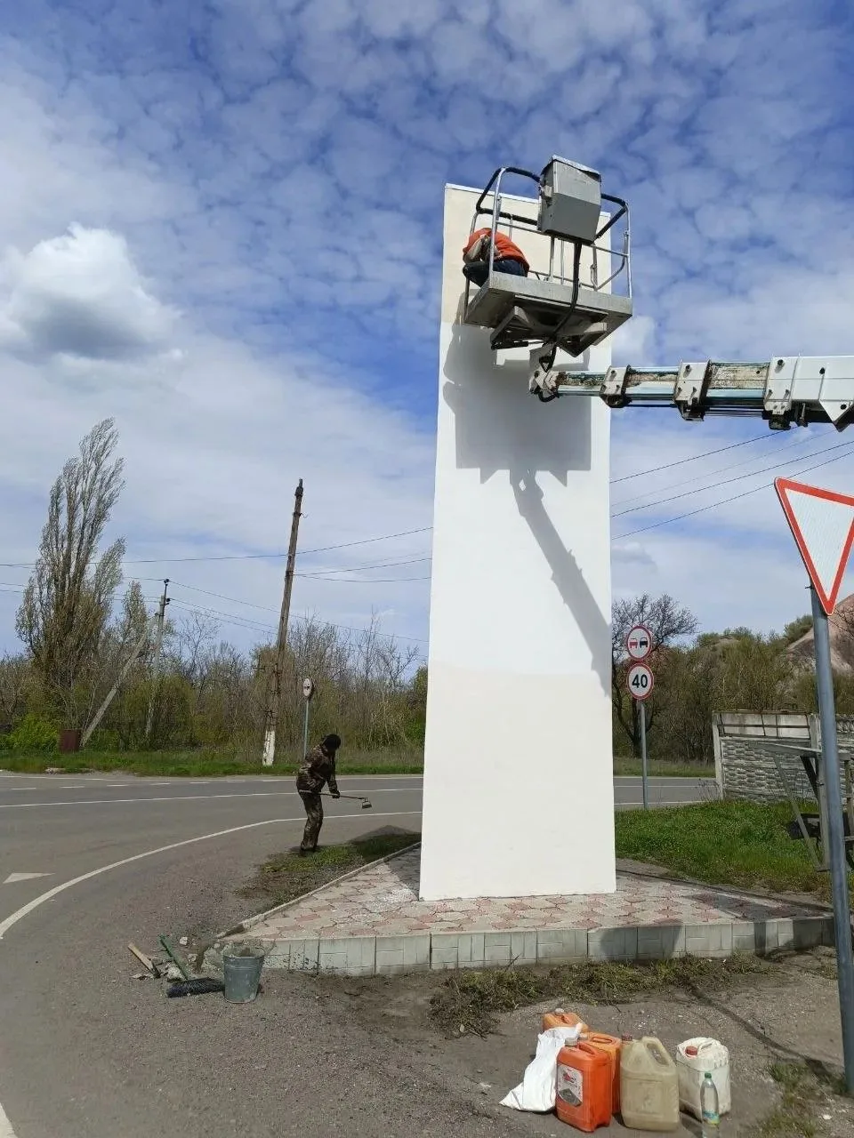 Благодаря усилиям работников коммунальной сферы, накануне великого праздника Дня Победы обелиск и прилегающая территория были благоустроены, что стало знаком уважения и благодарности защитникам Отечества.