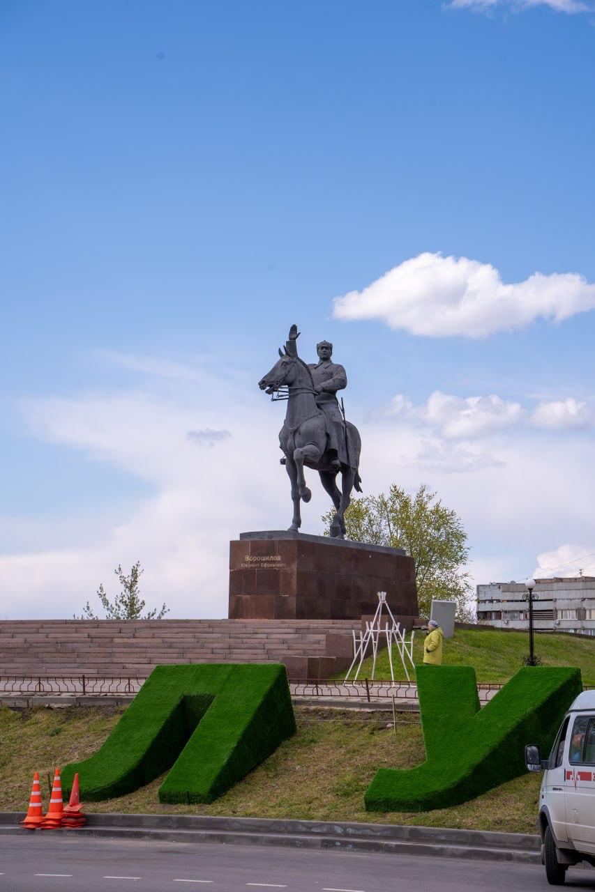 У памятника Ворошилову в Луганске появилась новая инсталляция: огромная надпись «Луганск»