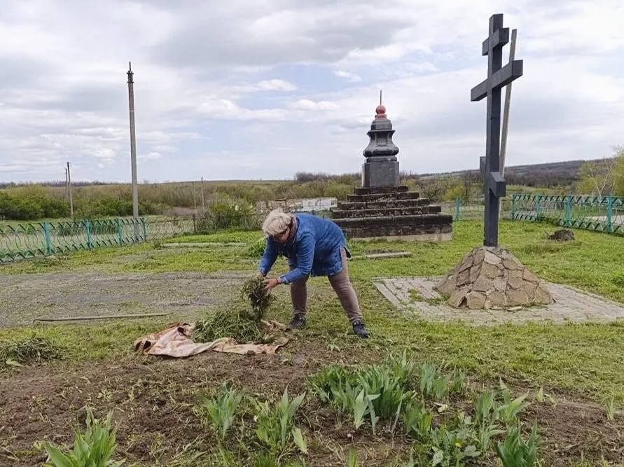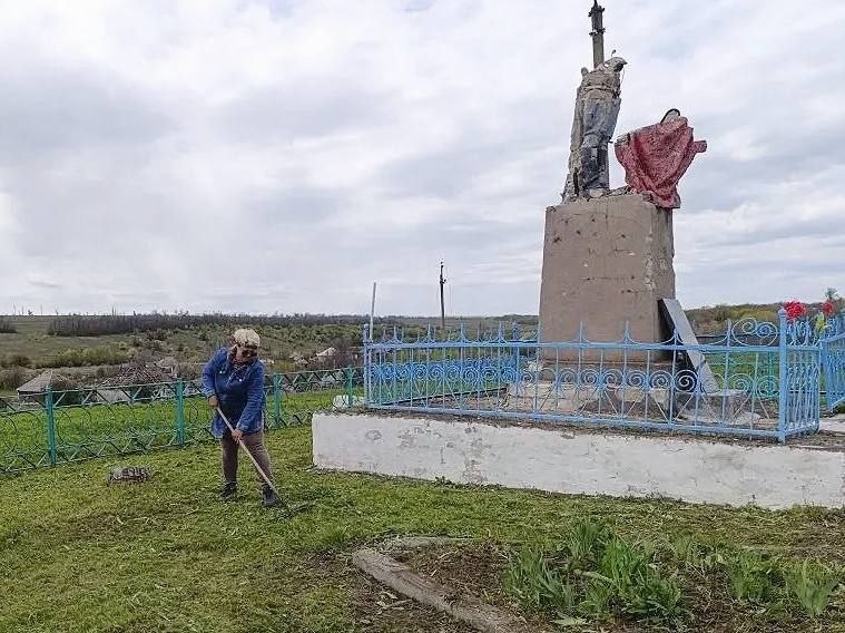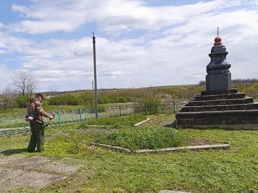 Специалисты отдела по жизнеобеспечению города Попасная и окрестных населённых пунктов вместе с активистами убрали территорию у памятника, посвящённого героям Великой Отечественной войны, в селе Приволье пгт Камышеваха.