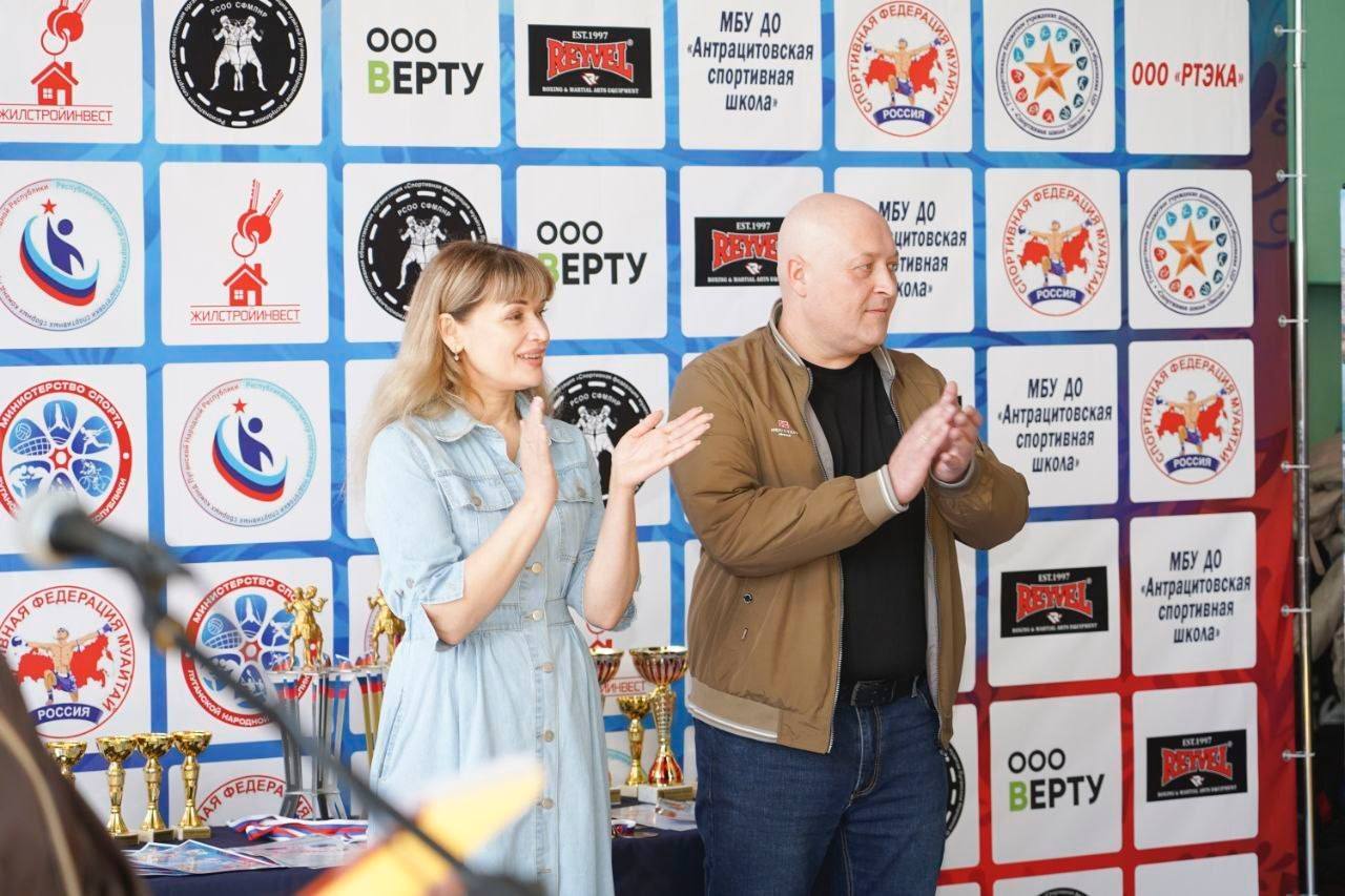 Торжественную церемонию открытия посетили заместитель главы города Антрацит Наталья Шаталова и президент Федерации муайтай Луганской Народной Республики Анатолий Стадник.