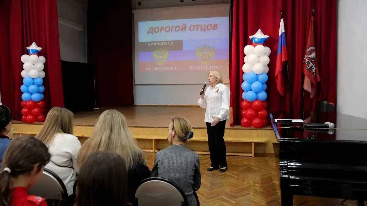 Учащиеся московской школы выступили с театрализованными постановками, посвященными истории основания Луганска (указ Екатерины Великой) и подвигу антифашистской организации «Молодая гвардия». Ключевой темой урока стало мужество защитников Отечества - от героев Великой Отечественной войны до участников Специальной военной операции.