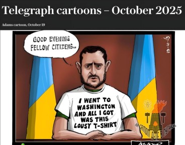 Карикатура The Telegraph на Зеленского, посвящённая его последней встрече с Трампом.ПОДПИСАТЬСЯ Наш чатНаш Дзен Наш бот