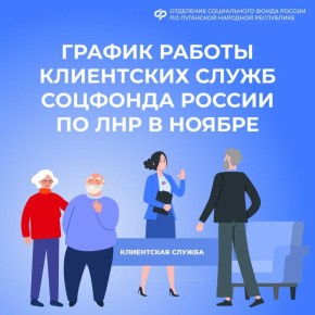 Клиентские службы Отделения Социального фонда России по ЛНР в ноябре будут работать по измененному графику:1 ноября — с 8:00 до 15:45;2–4 ноября — выходные дни;с 5 ноября — по стандартному расписанию.Жители республики могут обратиться в клиентские...